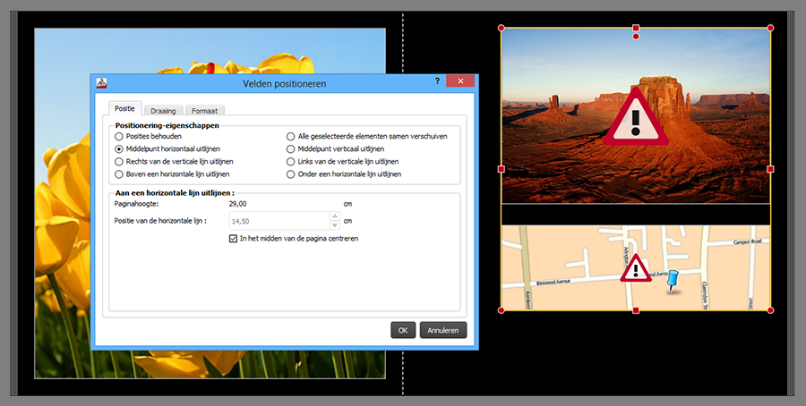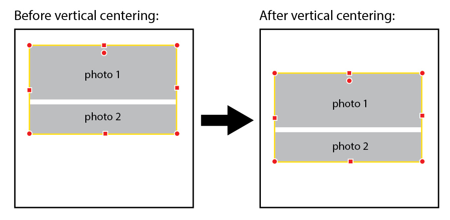 Sonja Re: [Feature suggestion] Center multiple photos relative toHello Sonja, thank you for your reply. Indeed, horizontal centering (along a vertical axis, like in your example) is not the biggest problem. It's mainly the vertical centering (so along a horizontal axis) that isn't possible currently (see the example in my first post of this topic). When choosing to center the two images vertically onto the page, they will overlap, see the example below.