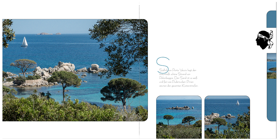 Die Ecken sind ein starkes Gestaltungselement und auch hier gilt: weniger ist mehr. Es ist wichtig, dass alle Ecken die gleiche Größe haben, sonst wird es zu viel und wirkt unruhig. Besonders wenn dann mehrere Fotos auf einer Seite sind, wird das eine Herausforderung. Danke für den Hinweis, DSL-schnell. Und die verschiedenen Blau-Töne kommen daher, dass unter dem Maurenkopf ein Foto liegt, und zwar das gleiche wie in der Landkarte. Die Flächen sind dann das gleich Foto nochmal, aber stark weichgezeichnet. Das gelbe vom Ei ist es noch nicht, ich werde also weiter experimentieren und eure Tipps beherzigen. Mal sehen, wie es wird. Für mich ist das immer die schönste Phase beim Fotobuchgestalten. Oft vergehen ein paar Tage und Nächte, bis es dann so ist, wie ich es will. LG Hellen Re: 6.2.2 EckenoptionenHellen hat geschrieben: Für mich ist das immer die schönste Phase beim Fotobuchgestalten. Oft vergehen ein paar Tage und Nächte, bis es dann so ist, wie ich es will. Unterschreibe ich sofort Hellen hat geschrieben: Es ist wichtig, dass alle Ecken die gleiche Größe haben, sonst wird es zu viel und wirkt unruhig. Das ist mir auch als erstes aufgefallen - nachdem ich die klasse Idee bewundert hatte. Natürlich ist die Eckengröße auch von der Bildgröße abhängig und an dem Streifen rechts wäre eine Rundung wie an der "Lasche" oben vielleicht zu groß. Grundsätzlich sehe ich es aber auch wie du. Lässt du uns dran teilhaben, wie dein Fotobuch sich entwickelt - da kommt sicher noch viel Kreatives liebe Grüße