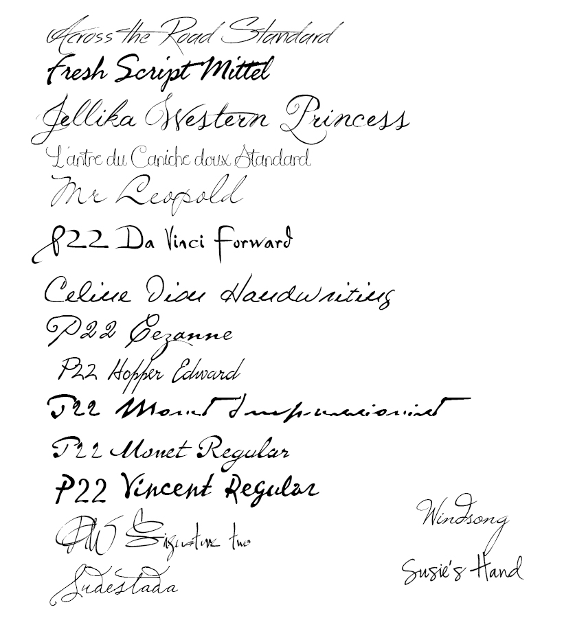 Ob dein eigener Font direkt im CEWE Programm richtig dargestellt wir, weiß ich leider nicht, da ich generell in PS schreibe und da geht ja alles. Hast du das im Buch schonmal drucken lassen? Oder sollte man den Text lieber mit einem externen Bildbearbeitungsprogramm erstellen und dann als png ins Fotobuch einfügen? Hier ist eine Liste von Fonts, die ich als Handschrift gelten lassen würde, manche sind auch echte historische. ---------------------------------------------------