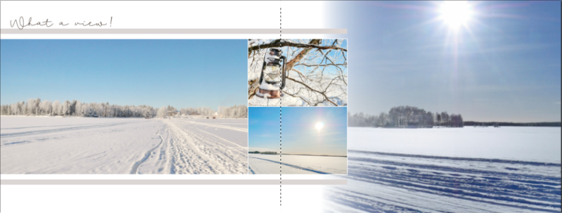 Ich weiß, dass nicht jeder hier ein Fan ist, von Bildern die über den Falz ragen, aber solange keine Gesichter etc am Falz sind, stört mich das überhaupt nicht, ich habe das in vielen Fotobüchern schon gemacht.
