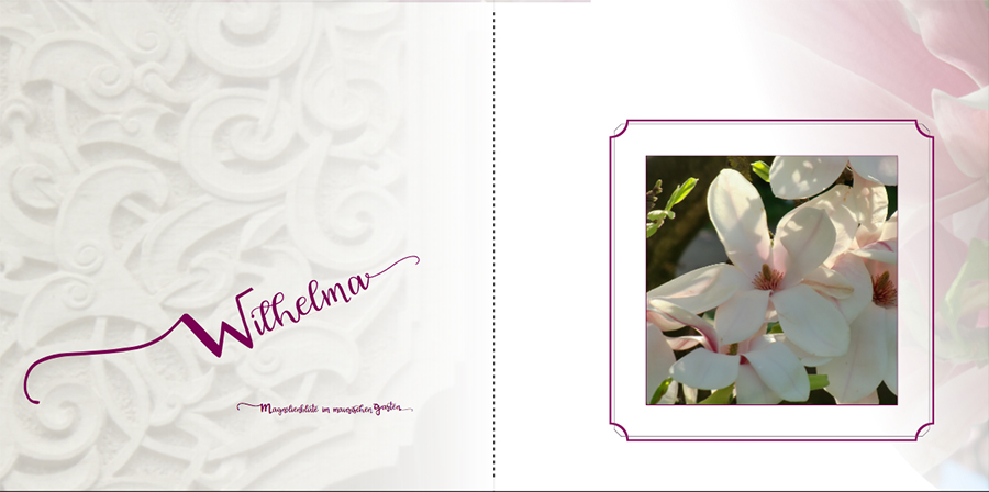 Zur Textgestaltung hab ich folgende Gedanken: Warum hast du eine Palme unter den Text gelegt? Haben Palmen in der Altstadt eine besondere Bedeutung? Wenn nicht, würde ich sie weglassen, denn sie macht den Text schlechter lesbar. Wenn sie dir wichtig ist, rück sie weiter zum Falz, aus dem Text raus. Wenn die Ecke ohne Palme zu groß wirkt, könntest du den Text vielleicht tiefer setzen und die Ecke ein bisschen verkleinern, so dass der Abstand wieder so ist wie jetzt. PS: Deine Hintergrundgestaltung gefällt mir sehr gut liebe Grüße