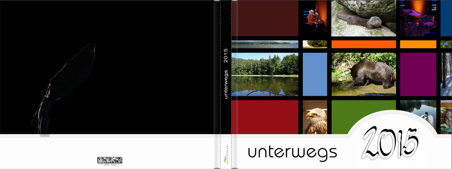 Seit einigen Jahren gestalte ich Jahrbücher zu unseren Kurzurlauben, Ausflügen etc., die alle den Titel unterwegs 20xx haben. Die Ereignisse sollten sich durch kräftige Farben voneinander unterscheiden. Duch Pittys Ausführungen über Linien in ihrem TG angeregt, kam mir die Idee, den Einband in Anlehnung an Mondrian zu gestalten. Die Farben finden sich im gesamten Buch und auf der ersten Seite, die den Titel wiederholt und genauere Angaben zu den besuchten Orten macht. Als Frontispiz (ich hoffe, ich habe es richtig verstanden, dass es sich hierbei um ein Foto auf der ersten Seite handelt) habe ich die Dame gewählt, weil sie so neugierig schaut, wo wir denn heuer unterwegs waren. Ich zeige euch gleich noch die letzte Seite, die ähnlich wie die erste gestaltet ist, nur mit einem Ausblick auf das kommende Jahr. Da ich mein Buch erst bestellen werde, würde ich mich über Kommentare/Kritik/Verbesserungsvorschläge freuen. Liebe Grüße und allen hier im Forum ein glückliches Jahr 2016 Yorck Liebe Grüße