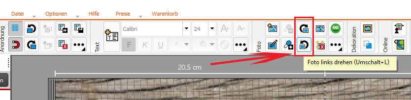 Man kann das Bild auch innerhalb des Platzhalters nach beiden Seiten drehen, siehe Anhang: