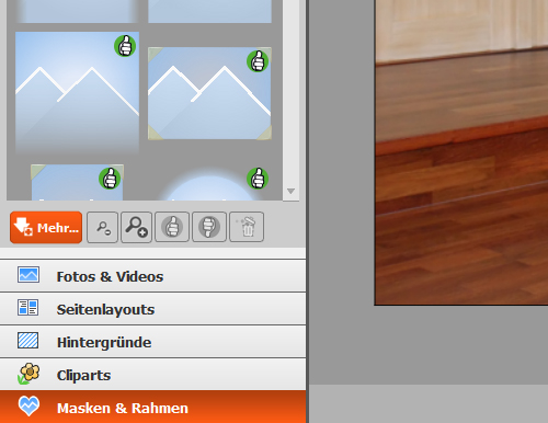 Unter "Masken und Rahmen" (links ganz unten) findest Du vermutlich das, was Du suchst. Wenn noch nicht die richtige Vorlage vorhanden ist, kannst Du unter "mehr" sehr viel finden und nachladen. Ich hoffe, dass ich die Frage richtig verstanden habe.