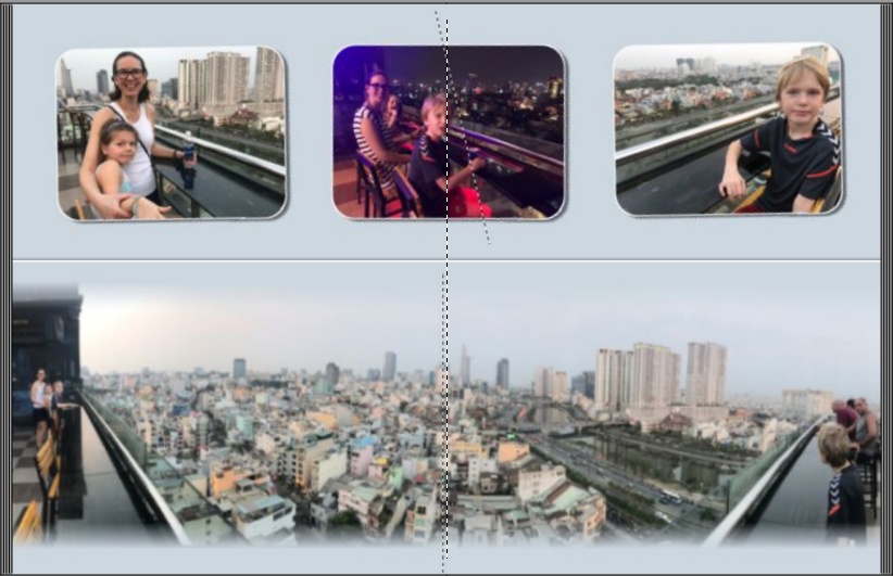 I am making a photobook to my son and his family who are in Vietnam at the moment. It is pictures of landscapes and many pictures of the children - only a "simple" book, but nice, I hope. But this page troubles me. Do you have any suggestions? Even if the picture in the middle is a night-picture and perhaps "don't fit" I would like to have it in the book because you can se the town by night (Ho Chi Min) Kind regards