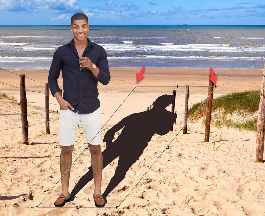 Ich habe es zu kompliziert gemacht, habe zuerst über die Einstellung Kameraverzerrung korrigieren gearbeitet. Dabei verformt sich der Schatten aber von den Proportionen zu sehr. Nur noch eine Frage. Bei dem Schatten am Boden im Sand ist der Rand sehr weich. Hast du den noch nachbearbeitet? Liebe Grüße