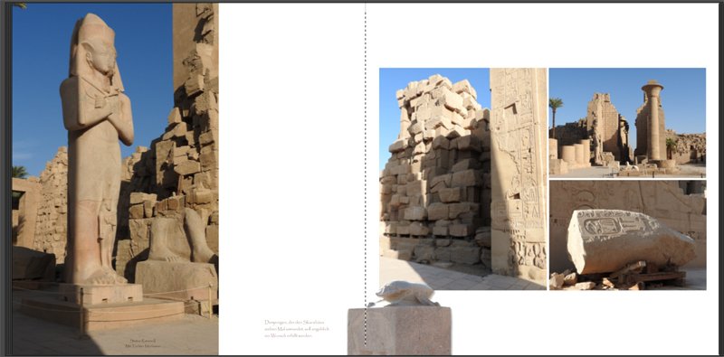 Ich würde das Foto auf der linken Seite verschmälern, sodass fast nur die Statue zu sehen ist. Den Skarabäus würde ich weglassen.