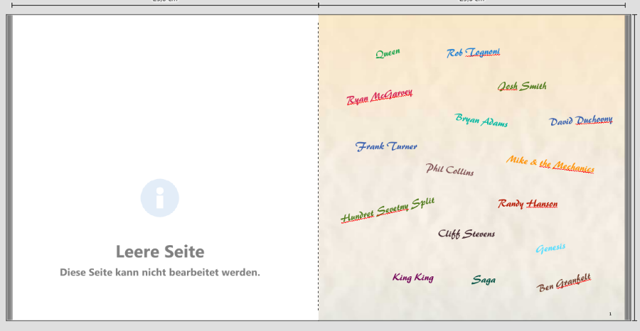 Die Gestaltung werde ich pro Dopplseite mit gleichen Hintergund machen, vielleicht auch durch das ganze Buch hindurch ( fHintergrund) bin mir noch nicht ganz sicher, aber schon mit masken und Farbe.