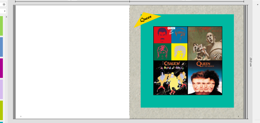 Dann dachte ich mir als Leitfaden immer vier Cover ( sofern es soviele gibt) mit Name, Als Lückenfüller fotografiere ich noch die Eintritts Karten als Collage ab, für die linke Seite.