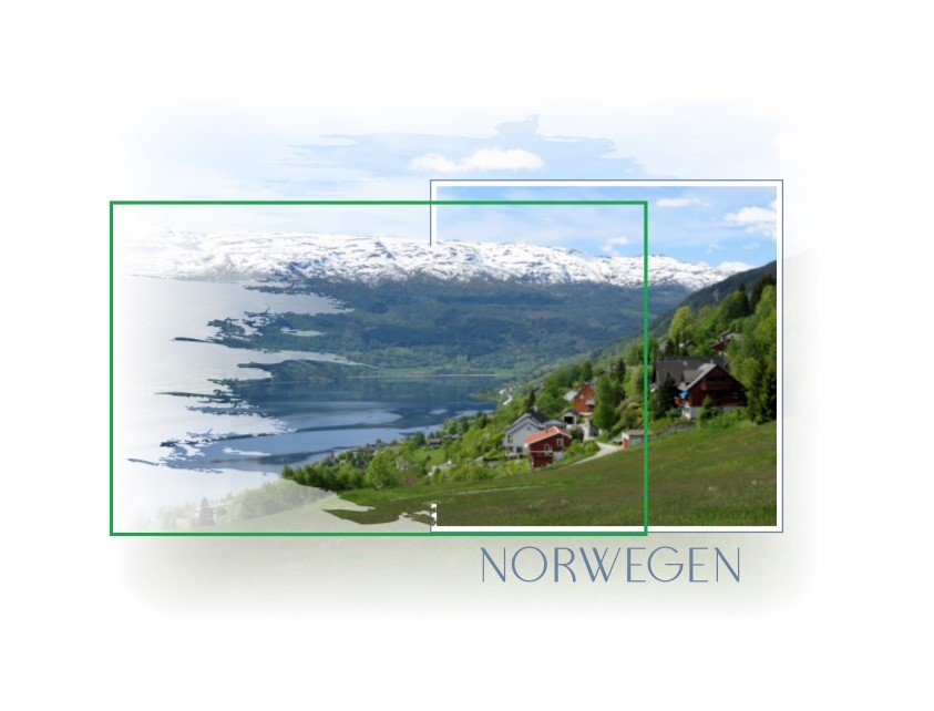 ich habe das von Dir verlinkte Beispiel noch einmal nachgebaut, um das Layout hier auseinander nehmen zu können. Anika58 hat sicher einen ähnlichen Weg gewählt. So soll es aussehen: Mein Vorgehen und meine verwendeten Masken/Werte: Zunächst platziere ich das Foto und ziehe es in die Größe und an die Stelle, wie ich mir die Gesamtgröße des Layouts vorstelle (roter Rahmen). Einen evtl. Zoom nehme ich bereits an dieser Stelle vor. Anschließend kopiere ich dieses Foto noch weitere zweimal und richte alle Fotos deckungsgleich miteinander aus. (ALT+HV) Das obere Foto erhält anschließend einen Rundum-Verlauf (Maske #99034) sowie eine Transparenz von 40% und wird abschließend in die unterste Ebene geschoben. Das jetzt oben liegende Foto verkleinere ich nacheinander mit den Seitenanfassern in der Höhe und in der Breite, sodass es ein quadratisches Maß erhält und den Ausschnitt zeigt, den ich für mein Layout möchte. Alternativ kann man hier auch über den Reiter Anordnen --> Objektgröße ändern gehen und für Breite und Höhe einzeln das Wunschmaß eingeben. Wichtig ist hier tatsächlich die einzelne Maßeingabe und das Offenlassen des Schlosses, da sich sonst das komplette Foto verkleinert und nicht nur der Ausschnitt. Den sichtbaren Bildausschnitt passe ich zuletzt so an, dass er wieder harmonisch mit dem darunterliegenden großen Foto übereinstimmt. Hinweis: Für das von Anika58 gezeigte Layout sollte das quadratische Foto recht nah am rechten Seitenrand des großen Fotos bleiben, um dem "herauswehenden" Foto möglichst viel Raum zum Wehen zu geben. Das quadratische Foto bekommt jetzt einen Farbrand außen in Wunschfarbe und -breite. Anschließend kopiere ich es, füge es nochmals neu ein (STRG+V / STRG+C) und richte es mit dem anderen quadratischen Foto deckungsgleich aus (STRG+HV). Das oben liegende Quadrat bekommt nun einen Farbrand innen weiß in Wunschbreite. Das große bisher unbearbeitete Foto versehe ich jetzt mit einer Maske aus der Kategorie Muster (#109974) und reduziere es mithilfe der Seitenanfasser in der Höhe und Breite, bis es mir gefällt und nur noch an einer Seite über das quadratische Foto übersteht (grüner Rahmen). Anschließend passe ich wieder den Ausschnitt an und hole dieses Foto in die oberste Ebene, sodass es nun optisch aus dem quadratischen Foto zu fließen scheint. Das Foto mit der Muster-Maske kopiere ich noch einmal, füge es neu ein und platziere es in der Ebene hinter dem Quadrat mit dem farbigen Außenrand. Ich ziehe es in die Form und an die Stelle, wo es mir gut gefällt, richte den Ausschnitt wieder neu aus und gebe dem Foto abschließend eine Transparenz von 70% (gelber Rahmen). Layout fertig. Man kann das Layout natürlich beliebig variieren, indem man z.B. das teiltransparente große Foto und/oder die zweite Muster-Maske weglässt, so wie ich es z.B. hier gezeigt habe. Bei Weglassen des teiltransparenten Hintergrundfotos reicht es, das quadratische Foto nur einmal einzufügen und mit einem Farbrand Außen mit Abstand zu versehen. Auch kann der herauswehende Teil mit beliebigen Mustermasken in beliebiger Richtung genutzt werden. Die Masken lassen sich seit einiger Zeit spiegeln. Wie das geht, habe ich hier gezeigt. Dazu ein Beispiel mit derselben Weh-Maske wie o.g., nur vertikal gespiegelt: Ich wünsche viel Spaß beim Nachbauen. Und bei Fragen: Gerne melden! Liebe Grüße