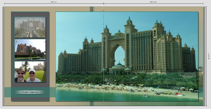 Was mich persönlich etwas bei den Bildern, z.B. vom Hotel Atlantis, stört, ist die Färbung der Fotos. Läßt du da den beigen Hintergrund durchscheinen? Es sieht etwas traurig aus. Auch finde ich generell den beigen Hintergrund zu dunkel, würde fast zu weiß tendieren. Die sehr kleinen ähnlichen Fotos, würde ich ganz weglassen. Die Seite mit dem Wasswerflugzeug ist mir zu unruhig, da sind einfach zu viele Linien.