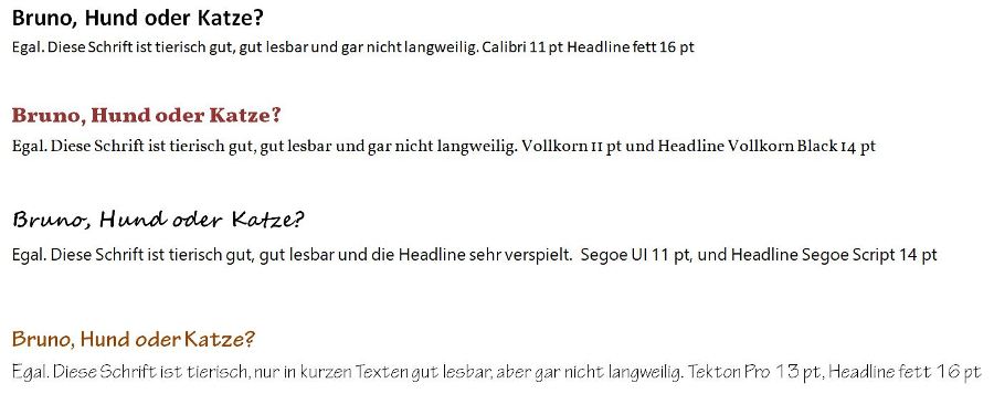 Sonja Re: BrunoSilber-Distel hat geschrieben: Inzwischen verwende ich für Texte je nach Buch-Thema derzeit meistens Arial, Calibri, Times oder immer wieder gerne auch Present-Normal oder Papyrus.