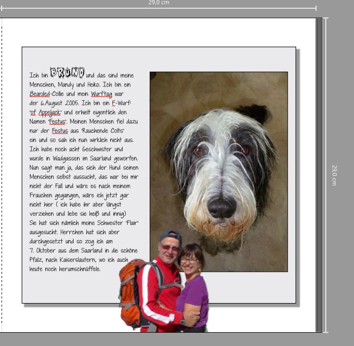 Uih. Ich wollte Dich nicht auf diese Fährte locken. Ich meinte die "normale" Segoe und nicht die Script oder Print.Ich frage mich, warum Du einen Font möchtest, der einer Handschrift gleicht. Was hat das mit Bruno zu tun? Ich würde die Bilder sprechen lassen und den Text bewusst zurückhaltend gestalten. Eine Auswahl: Lieber Gruß, pitty