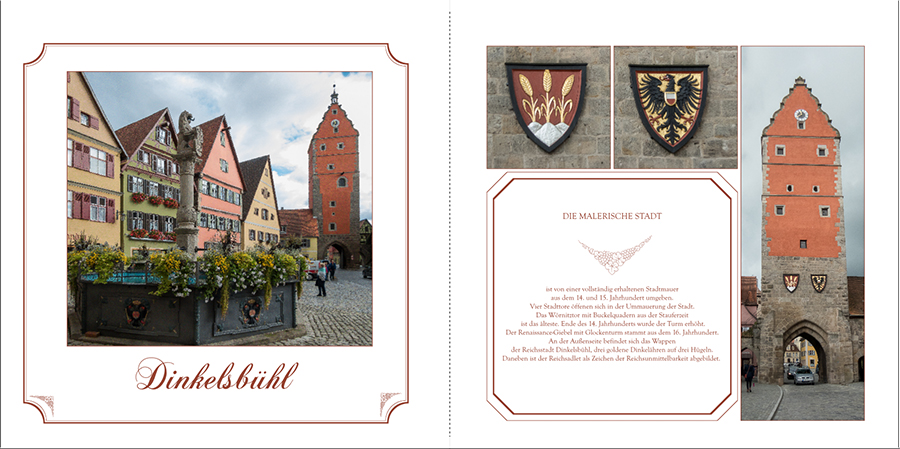 Eines solltest Du aber noch korrigieren: bei "Dinkelsbühl" sitzt das Foto nicht genau mittig, es müsst ein bisschen nach links verschoben oder entsprechend verbreitert werden. Auch die Hochkantfotos mit dem Rothenburger und dem Segringer Tor haben nicht den exakt gleichen Abstand zu den Rändern. Das sind die Dinge, die mir bei meinen Büchern immer erst auffallen, wenn ich das fertige Produkt ansehe - warum es mir bei fremden Exemplaren auffällt, ist mir ein Rätsel. D:mrgreen: D:roll: