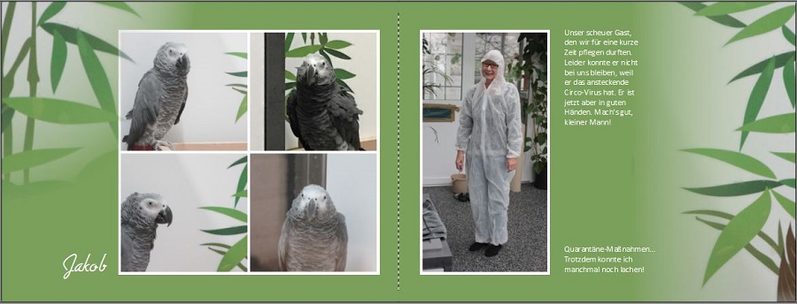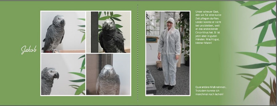 Josefia, wir machen das nicht beruflich. Papageienhaltung ist meine absolute Leidenschaft und mein Hobby, Erfüllung oder wie immer das man nennen mag. Ich liebe diese intelligenten Tiere über alles. Inzwischen haben wir übrigens zwei neue gesunde Männchen bei uns. Gibt viel Stoff für neue Fotobücher... Re: Tierseite gestaltenWar noch ein kleiner Fehler drin. Im oberen rechten Bild auf der linken Seite, der gelbe Balken. Gute Nacht!