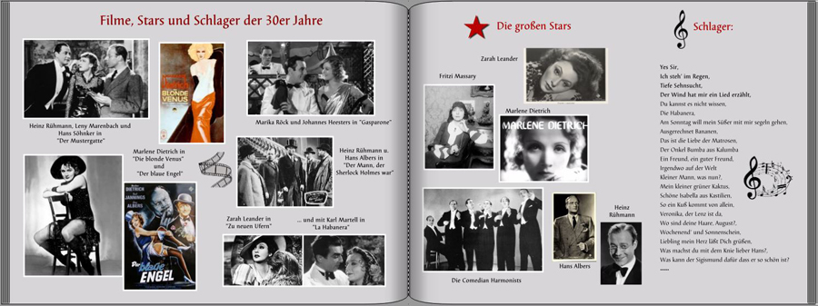 zum 90. Geburtstag meiner Schwiegermutter hatte ich ihr ein ähnliches Chronik-FB unter dem Titel "90 Jahre, eine ganze Menge Leben" geschenkt. Das war der absolute Hit. Sie hatte es immer auf ihrem Tisch liegen und hat täglich darin geblättert, weil sie, wie sie sagte, immer wieder Neues darin entdeckt hat. Ich habe dabei zu jedem Jahrzehnt Übersichtsseiten zu geschichtlichen Ereignissen, aber auch zu Musik, Filmen, Persönlichkeiten etc. gestaltet. Danach dann die vorhandenen persönlichen Fotos, Daten und Ereignisse auf eigenen Seiten.