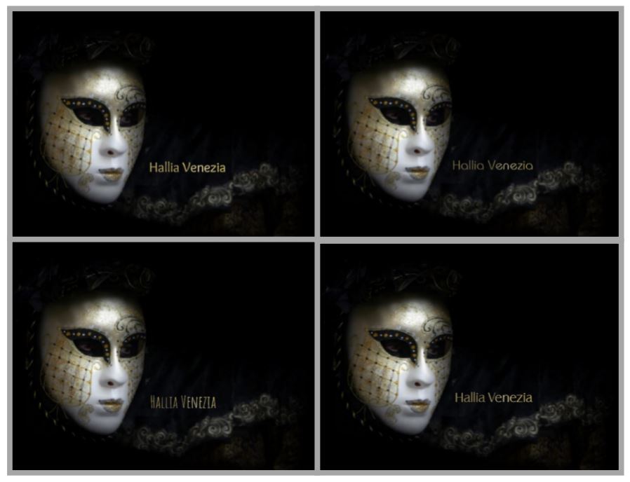 Die letzte Idee von Pitty mit der Dessau, die Fokussy vorgeschlagen hat, habe ich hier mal gebastelt. Ich denke, da ist die Schrift doch arg an den Rand gedrängt, das finde ich nicht so gut. Dass die Schrift allerdings kleiner werden muss, als in meinen Entwürfen am Anfang, das ist mir jetzt schon klar. Da war sie viel zu dominant. Aber welche Schrift, da bin ich noch nicht sicher. Script, ein bisschen verschnörkelt? Oder gerade, mit oder ohne Serifen? Oder gar Versalien???? Die Dessau gefällt mir sehr gut, eben typisch Bauhaus-Stil, reduziert, harmonisch, mit interessanten Hinguckern. Ich habe sie erst kürzlich im Hochzeitsbuch meiner Tochter verwendet, damit ist sie für mich gefühlt "vergeben". Aber da in dem Hallia-Buch kaum noch Text kommt, wäre die Schrift fürs Cover schon okay. Die Great Vibes, die Fokussy im ersten Beispiel verwendet hat, sieht auch gut aus und ist dem Thema vielleicht sogar eher angemessen (die Masken und Kostüme sind ja auch eher üppig, verspielt und auch etwas verschnörkelt!). Also es ist echt nicht einfach! Viele Grüsse