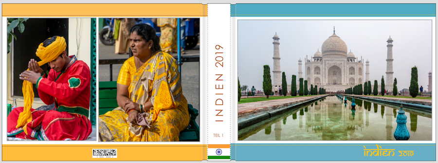 Ein Bild auf dem Cover gefällt mir grundsätzlich auch besser als zuvor zwei. Ich finde es nur schade, dass dadurch das Wasserbecken im Vordergrund fast komplett weggeschnitten wird und so die wunderbare Spiegelung des Taj Mahals, die man darin sehen kann, komplett verschwindet. Auf der Rückseite würde ich die Motive variieren und nicht zweimal ähnlich ausgerichtete Gebäudefassaden zeigen. Vielleicht hast Du auch Inder*Innen in ihren schönen farbigen Gewändern fotografiert und magst damit etwas kombinieren? Und eine Anmerkung noch zur Schrift. Scheinbar schreibst Du die Anfangsbuchstaben von z.B. "New Delhi" größer als die übrigen Buchstaben. Das kommt so in der gewählten (indischen) Schrift nicht vor und der versetzte Strich wirkt entsprechend unstimmig. Der Strich ist im originalen Schriftbild immer auf einer Linie. Wenn Du gerne Groß- und Kleinschreibung hervorheben willst, würde ich mich für eine grundsätzlich andere Schrift entscheiden. Schreibst Du im ganzen Buch im selben Orange-Ton? Hast Du mal probiert, dies pro Seite zu variieren und Orange- bzw. Brauntöne dabei aus den jeweiligen Fotos zu picken? Ich denke, das könnte stimmiger wirken. Liebe Grüße