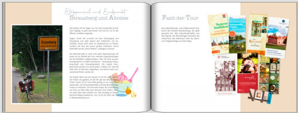 Kunigunde Re: (Rad-)Tour Brandenburg Nord.Zur letzten Seite: Die Idee mit dem (umgefärbten) Eisbecher zum Text und zum Foto finde ich hübsch. Das würde ich gar nicht ändern, sondern mit den kleinen Änderungen, die Du beschreibst, so lassen, wie Du es schon gestaltet hast. Die Prospekte auf der rechten Seite würde ich überlappender anordnen und dabei in Kauf nehmen, dass ein Teil der Prospekte dabei jeweils nicht vollständig sichtbar ist.