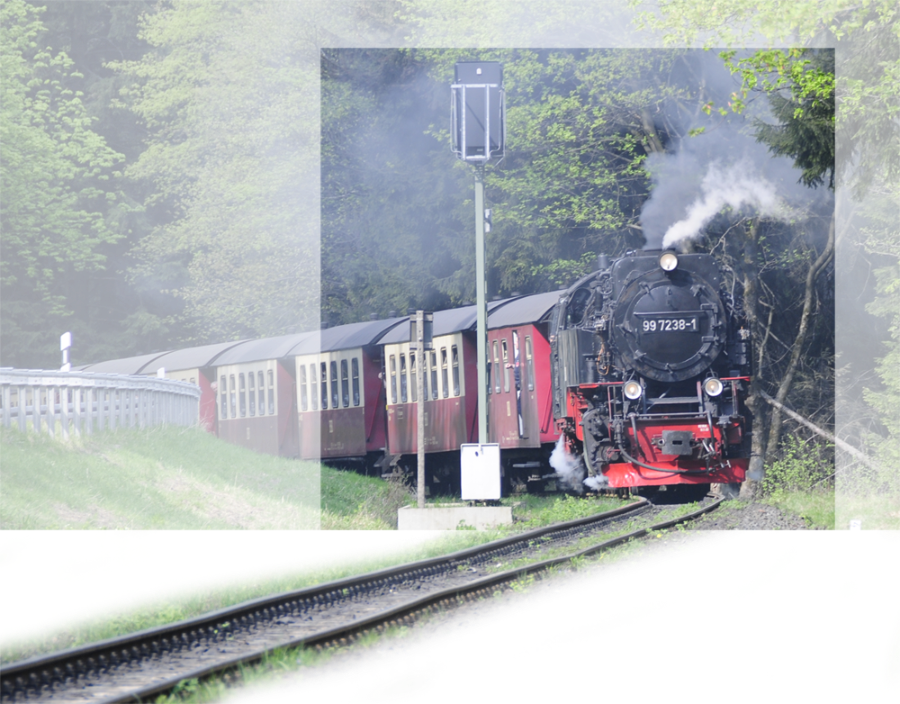 Mit Deinem gezeigten Versuch läuft die Schiene im rechteckigen Bildmaß aus. Du kannst auch dem Schienenverlauf (also schräg) folgen, wenn Du den "Auslauf" z.B. mit Freistellen per Transparenz-Funktion nutzen magst. Auf die Schnelle mit heute zittrigem Händchen käme das dann z.B. so raus. Alles mit Bordmitteln der CEWE-Software.