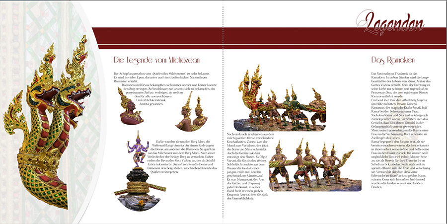 Übrigens habe ich bei „Thailändische Mythologie“ eine eherne Regel gebrochen: ich habe den Text auf die Mitte gesetzt. Mich stört es aber nicht, denn sonst hätte ich es mit den Seiten nicht hinbekommen. Und meine Bücher haben Layflatbindung.