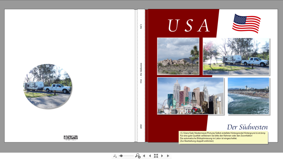danke für den Tipp mit der Schräge, das werde ich meiner Layout-Sammlung einverleiben. Der neue Entwurf gefällt mit gut, auch dass das Blau als Streifen nochmal vorkommt. Auf Deiner ersten Innenseite hast Du mit den 4 Wochen und dem Datum eine Dopplung. Ich würde "Mit dem Pickup und Wohnwagen durch den" schreiben.