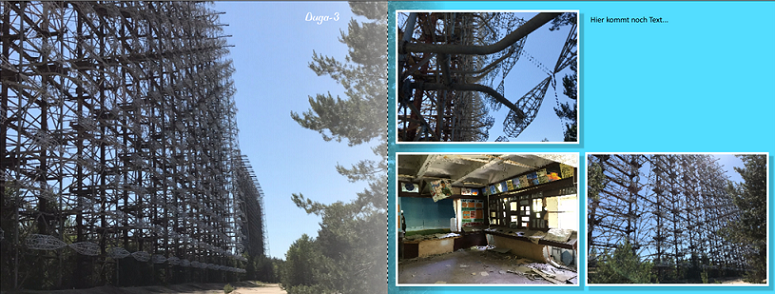 Nun habe ich von der Stadt Tschernobyl noch ein paar Bilder "übrig", die ich aufgrund der Hintergründe (also der Geschichte dahinter) noch auf zwei Seiten unterbringen möchte. Es soll auch daher auf diesen beiden Seiten geschehen, da danach einiges vom Duga-Radar kommt und dafür möchte ich auch Doppel-Seiten verwenden.