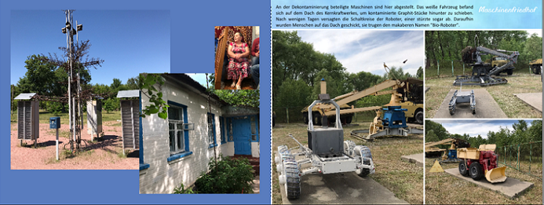 Die Frau kam bereits eine Woche nach dem Unfall im Kraftwerk zurück in ihr ehemaliges Dorf und wurde später nach Tschernobyl zwangsumgesiedelt, da ihr Dorf von Panzern zerstört wurde. Sie erzählte uns ein paar Sachen, wie das damals ablief und dies möchte ich gerne neben den drei Bildern auf der Seite schreiben.