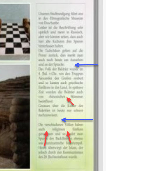 Rotuma, du hast recht, es gibt ein paar kleine Lücken, man kann sicher noch optimieren, aber ich finde, so sehr fallen sie nicht auf, insgesamt wirkt der Text im Blocksatz doch harmonisch zum Layout passend. Ich denke, Monika wird aufgrund deiner Hinweise nochmal den Text überarbeiten.