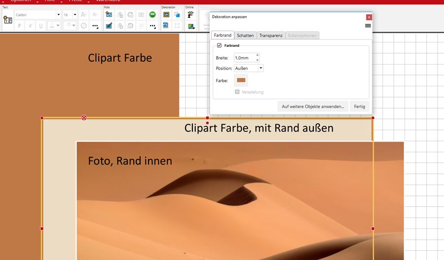 Clipart Farbe mit Rahmen außen versehen. Der Rahmen hat dieselbe Farbe wie die Hintergrundfläche!