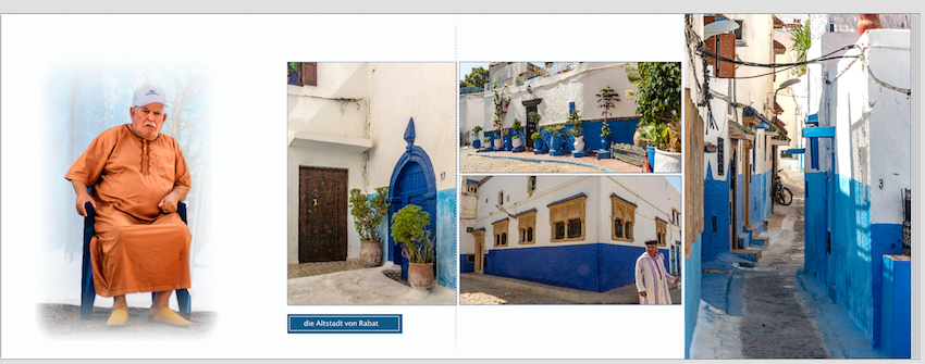 die blau/weiße Gestaltung Deiner Seite gefällt mir sehr gut. Auch der alte Mann als belebendes Element zu den sonst fast leeren Straßen wirkt auf mich interessant. Allerdings scheinen mir Mann und das obere verzierte Fenster etwas verloren in der gesamten Gestaltung. Ich würde das schöne Fenster vielleicht auch auf einer anderen Seite unterbringen. Wie sieht das komplette Foto mit dem Mann aus? Hast Du ihn teilweise freigestellt? Ich kann das leider hier am Bildschirm nicht so gut erkennen. Vielleicht kannst Du das Originalbild ebenso groß einfügen wie das Bild auf der rechten Seite, es stark transparent gestalten und den Mann vollfarbig freigestellt davor? Liebe Grüße