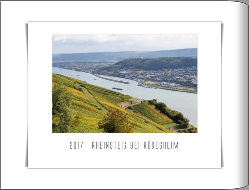 Zu den Schatten möchte ich auch noch etwas abnmerken. Vielleicht ist es ja auch ähnlich oder gleich dem, was spica dazu meint. Auf dem 3. Beispiel Rheinsteig bei Rüdesheim fällt es ganz besonders auf, daß die Schatten zur "dicken" Seite abrupt enden, sie laufen nicht aus. … Auf der ersten Innenseite empfinde ich die 3 untereinander angeordneten Fotos bzw. die verwendeten Schatten dicht beieinander, wirkt irgendwie ein bißchen gedrängelt. Evtl. andere Schatten (alle in eine Richtung) ausprobieren und die Schatten dichter an das Foto ranrücken, also nicht soviel Luft lassen zwischen Foto und Schatten. Ich wünsche dir weiterhin gutes Gelingen und viele Ideen!