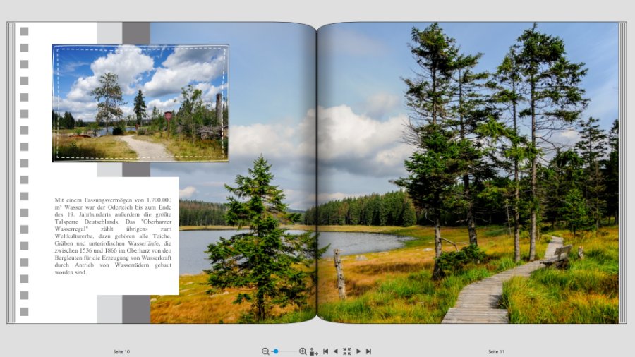 auch von mir ein Willkommen im Forum. Einen Stilwechsel würde ich ggf. für Kapiteleinleitungsseiten verwenden, aber ansonsten einem Stil im Buch treu bleiben, wie es auch schon DSL-schnell erwähnt hat. Da Du auch fragst, welcher Stil schöner ist: Mir gefallen die Seiten ab dem Oderteich etwas besser als die Seiten davor. Das mag aber auch an den wunderschönen Motiven liegen, die Du da zeigst. Auch mag ich gerade ausgerichtete Schrift lieber als schrägstehende. Aber vielleicht ist das eher persönliches Gusto. Ich freue mich schon auf Dein Buch. Du zeigst es doch sicher bei den Kundenbeispielen? Dein letztes Werk über Rügen habe ich heute schon zum zweiten Mal durchgeblättert. Sehr schön! Liebe Grüße