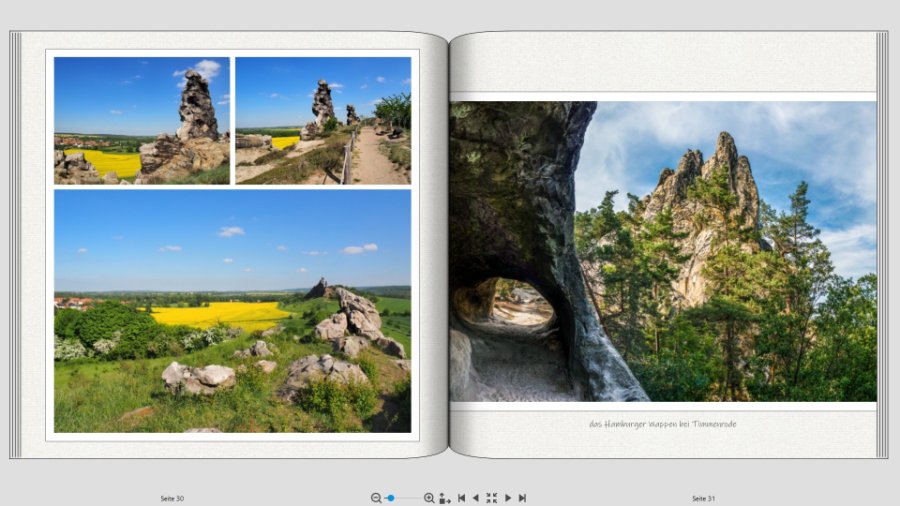 die neue, schlichte Gestaltung gefällt mir sehr gut. Ein Buch über den Harz ... mein Harzer Schmanddrachenherz schlägt höher ;). Ich würde nur die Skulptur des Teufels auf dem Teufelsmauerweg nicht so riesig gestalten, denn du weißt ja auch, dass sie da, wo du sie platziert hast, nicht steht.. Das verzerrt die Echtheit des Weges. Lieben Gruß Pascalinah
