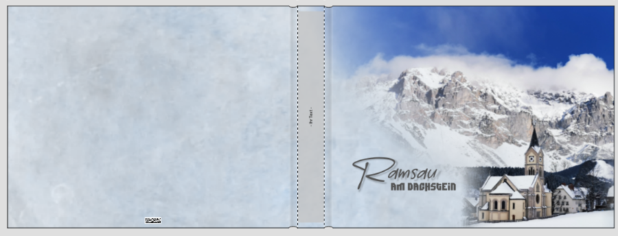 Was die Schrift betrifft, so würde ich auch die Schattenvariante des 3. Beispiels für Ramsau wählen. Die Schrift für "Am Dachstein" gefällt mir nicht, sie ist mir ein wenig zu massiv und die Mischung aus Kleinbuchstaben und Versalien innerhalb eines Wortes finde ich auch nicht gelungen. Aber das ist wohl Geschmackssache. Vielleicht findest du da noch etwas Gefälligeres.