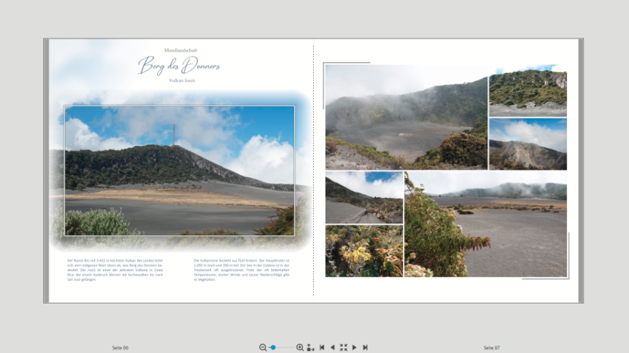 danke für Eure Antworten. @Kunigunde: ja, es sind Cliparts "Farben", die kann ich von der Rahmenstärke besser anpassen als die Cliparts Ecken. Die gezeigten Seiten sind wie die Einleitungsseiten zu einer neuen Etappe zu sehen und mit Informationen gespickt. Die Rahmen-Maske auf dem linken Foto habe ich aber nicht auf jeder Einleitungs-Seite verwendet, ich bin mir auch noch nicht sicher, ob ich sie nicht alle rausschmeiße. Hier noch ein paar Beispielseiten, wie der Rest des Buches gestaltet ist. Die Texte sind noch nicht fertig...