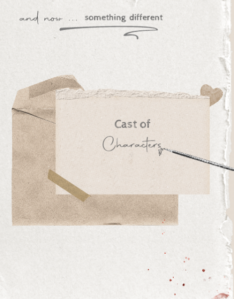 Mit den Themen tue ich mich auch schwer. "Cast of Characters" kenne ich als Besetzungsliste bei einem Film, was meinst Du damit? Wurden Deine Hunde auf einem Filmset eingesetzt? Vielleicht findest Du noch treffendere Titel für die 3 Themenkreise, am besten kein Deutsch/Englisch-Mischmasch, sondern nur Deutsch oder Englisch.
