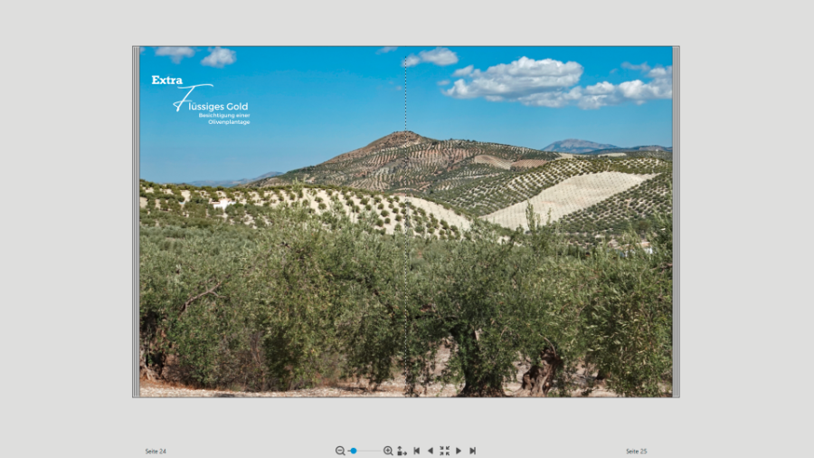 Die Abstände sind exakt gleich, ich habe die Fotos so platziert, dass die Warnung "zu nah am Rand" kommt, das müsste unten und oben identisch sein. Und auch am falz sind sie genau ausgerichtet sagt mein Bildschirmlineal. Vielleicht eine optische Täuschung?Traumfänger hat geschrieben: Was ich aber sehe, hat für mich mit Magazin nicht viel zu tun. Ich möchte auch kein Buch im Stil einer Fraun- oder Fernsehzeitschrift gestalten, sondern hatte eher Geo oder National Geographic im Sinn, da sind ja weniger Formen und wild durcheinander platzierte Fotos auf den Seiten. Allerdings habe ich festgestellt, dass ich für diese Idee der Gestaltung schlichtweg zu wenig Text habe. Bei den Wanderungen gibt es nichts weiter zu schreiben und auch bei den restlichen Touren nicht, ich war schon mal in Andalusien, damals die klassische Reise mit mehr Kultur und demzufolge mehr Text. Mal sehen, hab auch schon in meinem Standard-Format XL probiert, aber da hab ich auch noch keine guten Ideen. Der Winter ist ja zum Glück lang, nass und dunkel...Re: MagazinstilReisetante hat geschrieben: