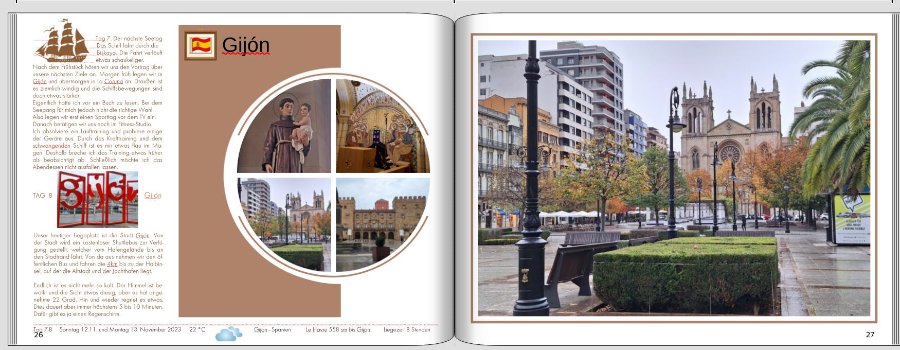 @Basilikum, ich weiß, es ist eine Herausforderung nur ein FB von der Reise zu gestalten. Deshalb wird es auf jeden Fall einige Seiten geben, auf der mehrere Fotos angeordnet sind.
