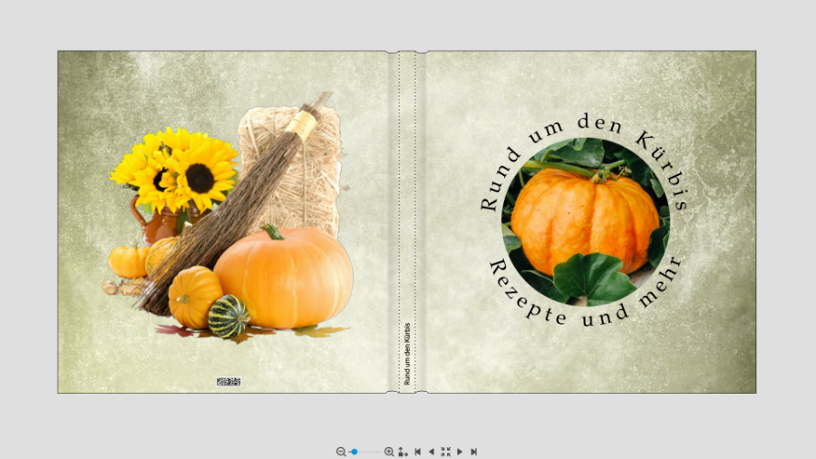 einen Kürbis freistellen. verkleinern, kopieren und dann die Mitte der beiden Schriftzüge setzen, dann wäre der Abstand nicht so groß Re: Cover für KürbisbuchGut gemeint, aber ich hab jetzt auf der Rückseite auch noch