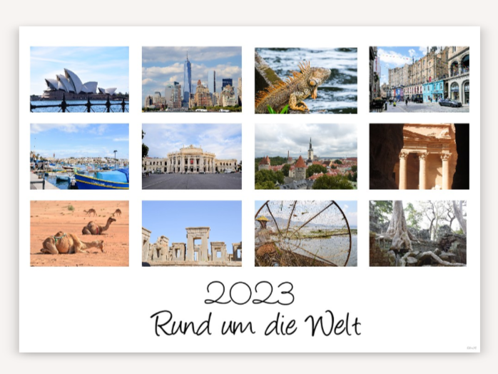 Gerne habe ich bei Reisen 9 oder 4 Felder mit thematischen Fotos (Türen, Kirchtürme, Felder mit verschiedenen Getreide,...) etwas, das bei diesem Land/Stadt typisch war, aber keine "Sehenswürdigkeit" im herkömmlichen Sinn.