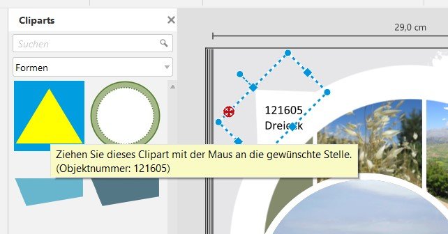 Im Downloadportal (mehr herunterladen) wird die Objektnummer direkt unter dem Clipart bzw. der Maske angezeigt. Während der Arbeit im Buch kannst Du Dir die Nummer in der Elementtypvorschau per Mouseover (Maus über das Objekt halten, ohne zu klicken) anzeigen lassen. Hier ein Beispiel: