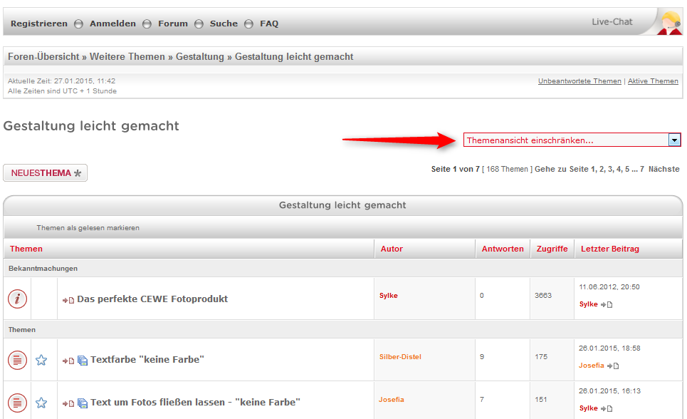 Wenn Sie nach einem Thema suchen, dann können Sie damit beginnen in den einzelnen Kategorien die Beiträge durchzusehen oder Sie klicken in Ihrer Navigation oberhalb des Forums auf