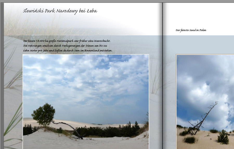 Buchempfehlung: Lust auf Lettering, Martina Flor http://www.typografie.info/3/artikel.ht ... tina-flor/ abgerufen 30.12.2016, 17:44 Uhr Handschriften stehen als Synonym für persönliche Mitteilungen. Wenn das Schriftbild ästhetisch ist, sieht es wunderbar aus: Schreibschrift zu verwenden, entspricht momentan dem Zeitgeist. Man sollte sich den Anwendungsfall also gut überlegen. Es gibt viele Beispiele aus der Werbung. Hier eines davon: Ich habe eine Doppelseite eines Fotobuchs nachgestaltet, um kein exaktes Beispiel zu veröffentlichen. Ich habe den Fonts Caflisch Script verwendet. Sie passt zum Thema (Reise/Sand/Strand/Urlaub usw.). Die Überschriften sind "noch" gut lesbar. Es strengt jedoch an, den Fließtext zu lesen. Immer her damit. Am besten postet Ihr es im Beitrag "Fragen zum typografischen Glossar" http://www.cewe-community.com/forum/vie ... 147#p93147. Lieber Gruß, pitty