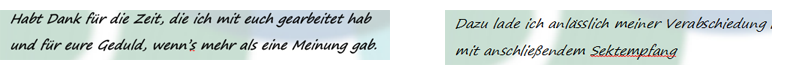 Re: TextproblemFreut mich, dass das Problem gelöst ist. Dann steht den Einladungen nichts mehr im Wege.