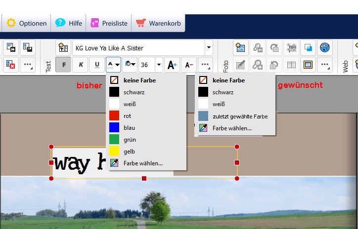 Ich möchte nochmal den Wunsch hervorholen, das Drop-Down-Menü der Textfarbe zu überholen.