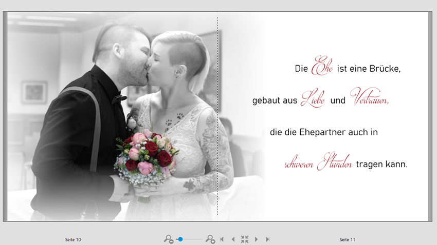 Beraten lassen und etwas Neues lernen ist immer von Vorteil. Nur entscheiden, was man zum Schluss tatsächlich verwendet, muss man nach dem eigenen Geschmack. Es nützt nichts, eine tolle Gestaltung zu kopieren, wenn man ein komisches Gefühl hat oder nicht überzeugt ist. Manchmal passt es nicht mit den eigenen Bildern Es ist erst mein zweites Buch und zur Zeit probiere ich viel aus, lösche auch Sachen wieder und lasse mich gerne von euch beraten. Möchte gerne von euch lernen soweit wie ich darf Bin so dankbar für eure Meinung und Tipps