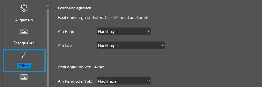 3er Seite VOR der Panoramaseite: Die Abfrage/Warnung erfolgt am Falz, aber nicht am Knick. 3er Seite NACH der Panoramaseite: Die Abfrage/Warnung erfolgt am Knick, aber nicht am Falz. Richtigerweise müsste die Abfrage in beiden Fällen an beiden Stellen erfolgen, also am Falz UND am Knick. Auch mit der Einstellung "niedrig" zieht der Magnet (ggf. nach Abfrage) das Bild an den Falz/Knick. Hier muss das Bild bzw. die Bildkante nur näher am Falz platziert werden als bei "mittig" oder "hoch", damit die magnetische Funktion auch greift. Liebe Grüße