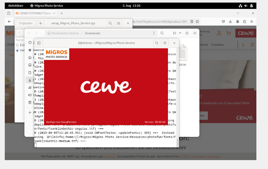 nach Rücksprache mit unserer Fachabteilung, sollte unsere Fotowelt Software ohne Schwierigkeiten unter Linux Debian 12 Bookworm laufen. Dies gilt ebenso für den Handelspartner Migros.