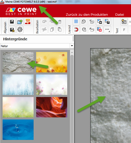 bei mir wird sie hier gefunden, also auf der C-PLatte und da kann nichts verschwinden. Du könntest doch in diesem Fall dein Fotobuch off-line gestalten und dann zum Schluß online gehen und die Hintergründe einfügen. Es ist natürlich Geschmackssache, aber der Hintergrund sieht im Buch nicht zu toll aus, mir ist das Gestein zu groß. Dies ist mir bei manchen Kundenbeispielen aufgefallen. Fotos kommen doch schöner zur Geltung, wenn du einen unifarbigen Hintergrund wählst. --------------------------------------------------- Re: Hintergrund im FB verschwindetHallo Blicki,